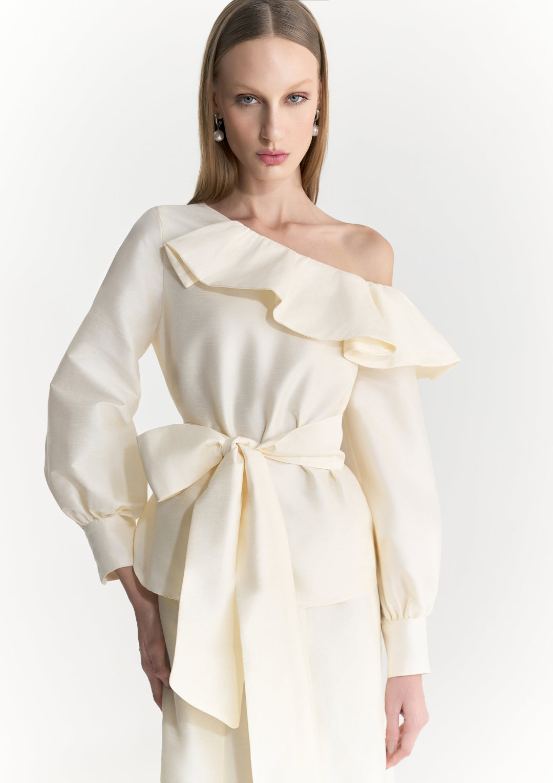 Blusa Assimétrica em Shantung com Babado Escultural – Alta-costura Contemporânea V.Condotti