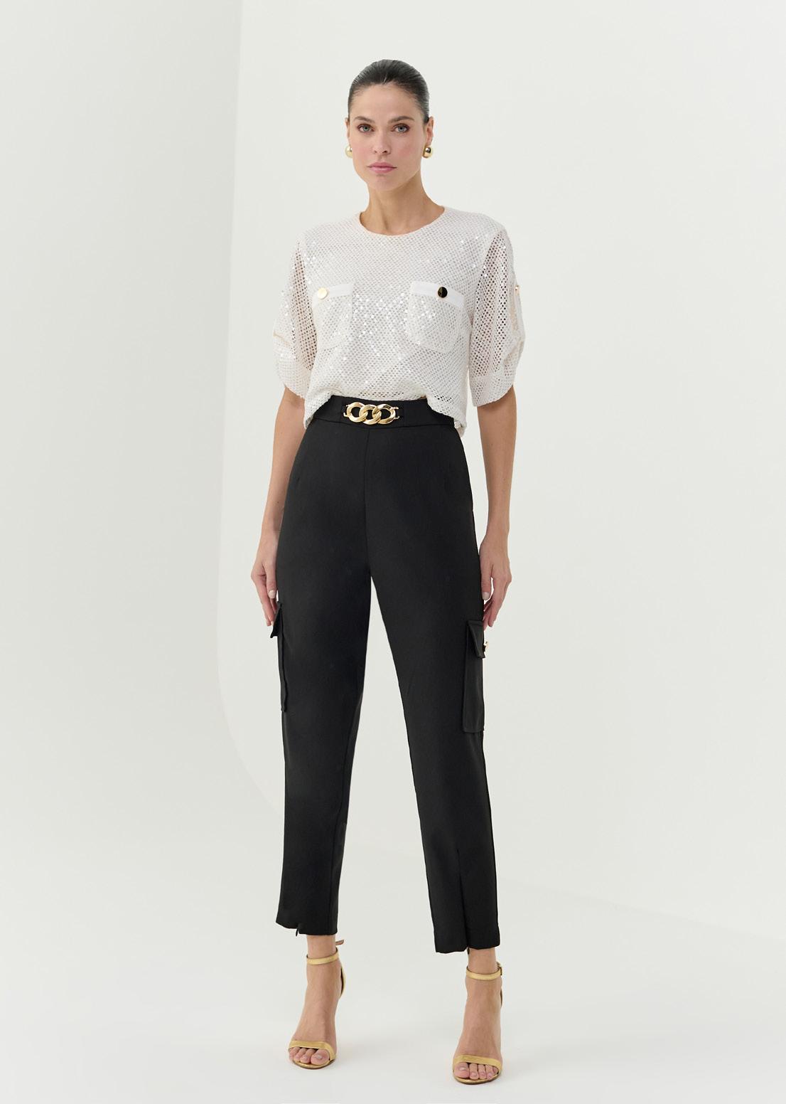A Calça Aimê é feita em crepe zurique e possui uma charmosa ferragem dourada na cintura. Com uma modelagem alfaiataria moderna, ela é perfeita para quem busca um look sofisticado e exclusivo. Seu estilo carrot traz elegância, qualidade e conforto para o dia a dia.