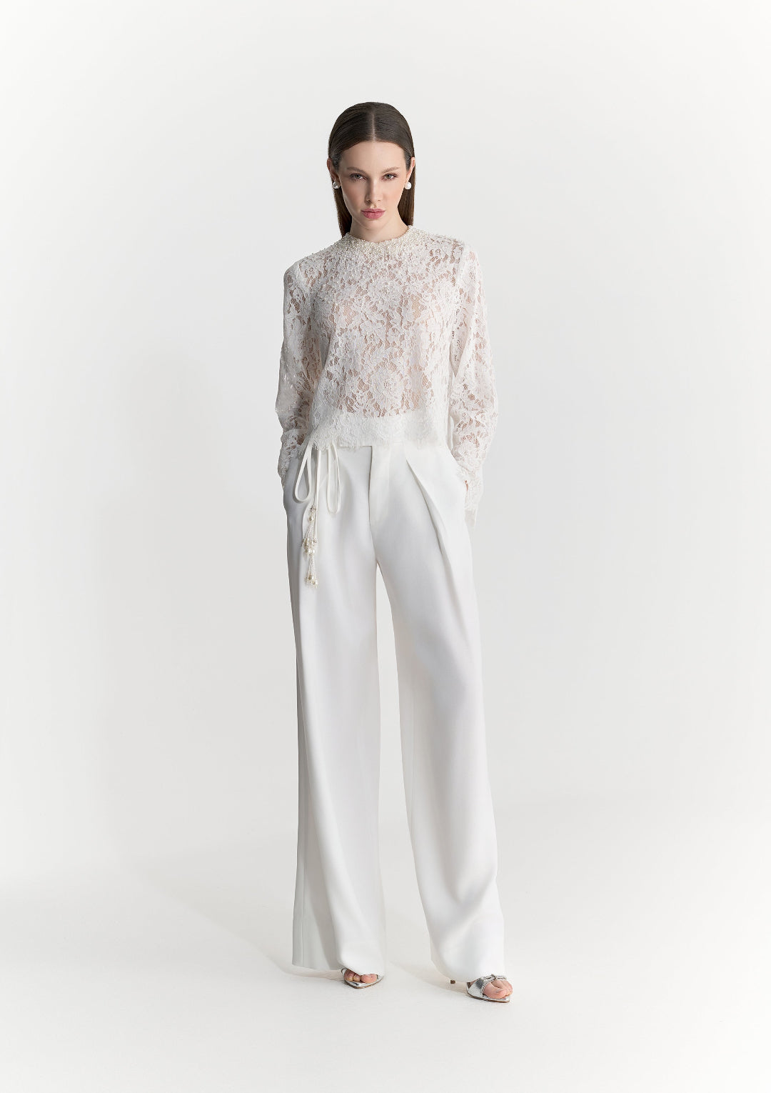 Cor Neutra e Elegante: O tom neutro e suave da calça facilita a combinação com diversas cores e estilos, tornando-a versátil para diferentes eventos.