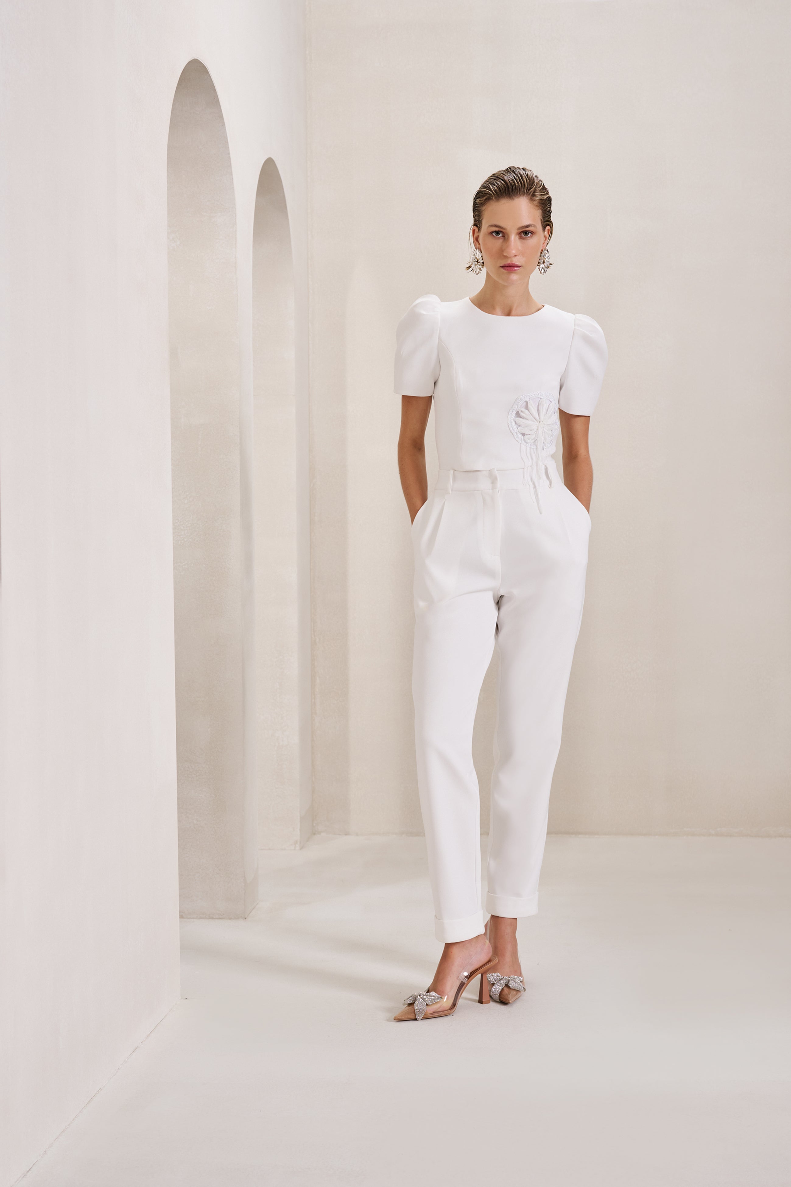 A Calça Ingrid apresenta uma modelagem clássica e sofisticada, confeccionada em tecido crepe de alta qualidade, proporcionando um ajuste perfeito ao corpo. Ideal para complementar looks elegantes e versáteis. Aproveite o conforto e a elegância da calça alfaiataria.