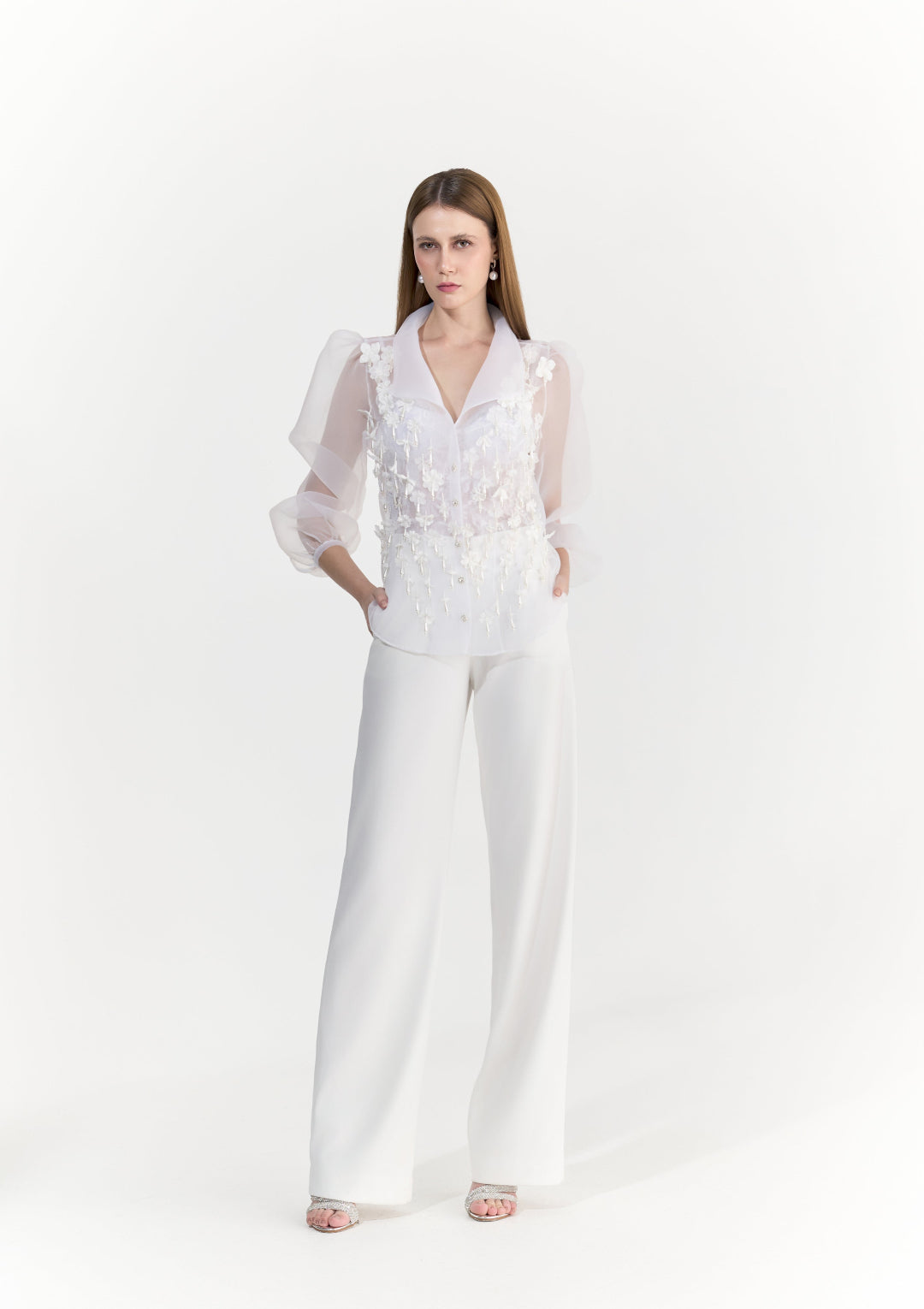 Combine com blusas texturizadas ou camisas em organza para um look de impacto. Complemente com saltos altos e acessórios minimalistas para um visual luxuoso e contemporâneo.