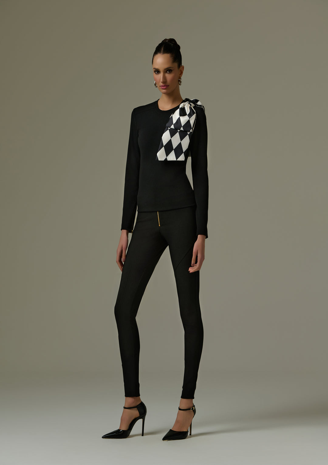 A Calça Toquio é a tradução contemporânea da elegância funcional. Confeccionada em malha 745, que oferece sustentação, elasticidade e toque encorpado, sua modelagem ajustada ao corpo valoriza a silhueta com elegância e conforto. O zíper frontal dourado adiciona um detalhe de sofisticação sutil e moderniza a proposta urbana da peça. Com recortes estratégicos e acabamento preciso, é uma escolha segura para mulheres que querem se sentir confiantes do dia à noite.