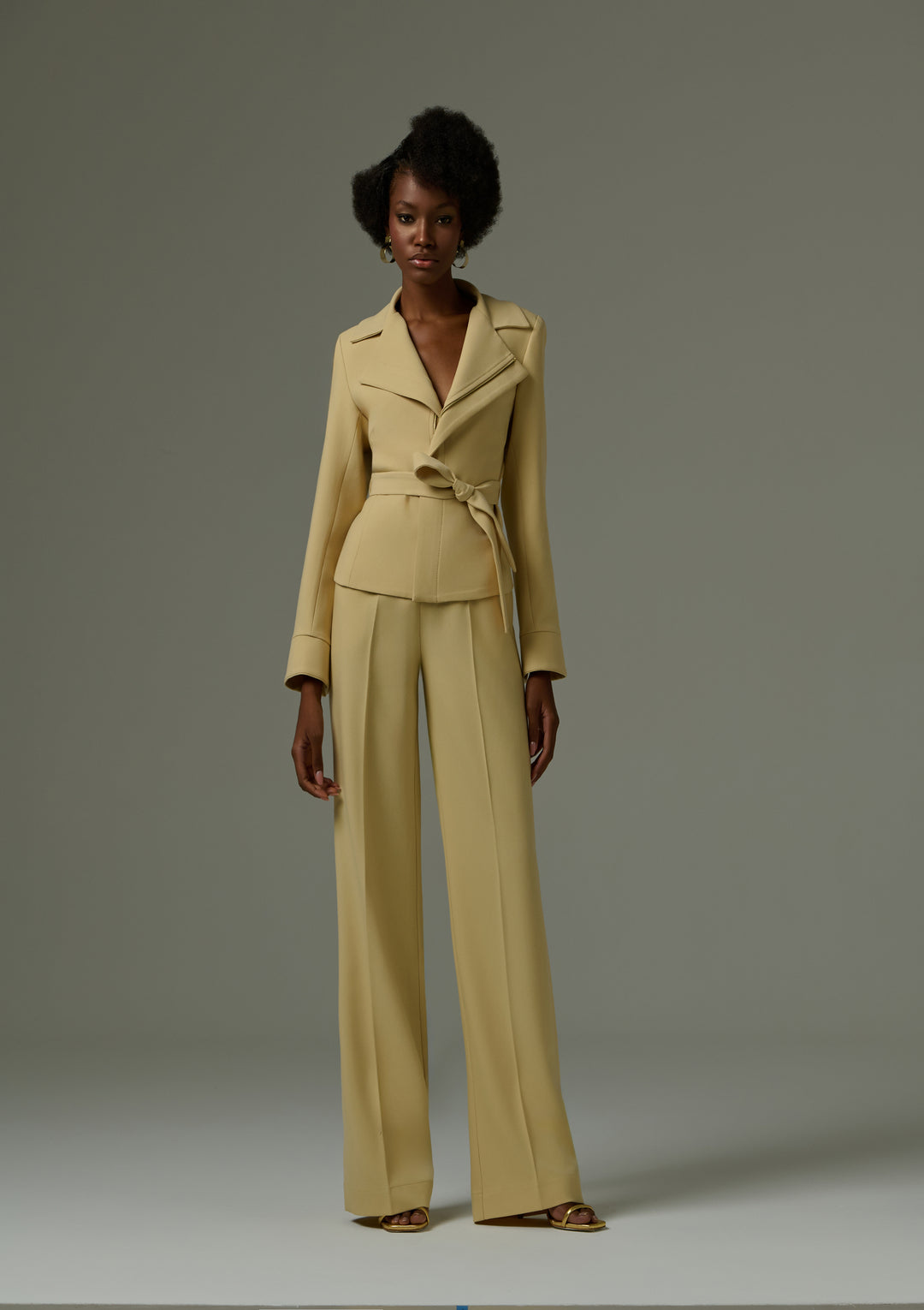 A Calça Stella representa a união entre estrutura e fluidez em um corte de alfaiataria pensado para mulheres sofisticadas. Confeccionada em crepe Miu Miu, tecido encorpado, com leve elasticidade e acabamento elegante, a peça tem cintura no lugar e caimento reto levemente amplo, que alonga a silhueta com naturalidade. Os bolsos laterais embutidos adicionam funcionalidade sem interferir na sofisticação da modelagem.