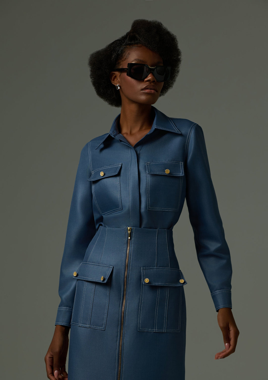 A Camisa El Paso combina o apelo clássico do denim com uma estética refinada e atual. Com modelagem de alfaiataria levemente ajustada, a peça estrutura a silhueta com elegância e segurança. Os bolsos utilitários com lapelas e botões dourados adicionam charme e personalidade, enquanto as costuras contrastantes reforçam o acabamento minucioso. O colarinho clássico traz um toque de formalidade equilibrado pelo frescor contemporâneo do design.