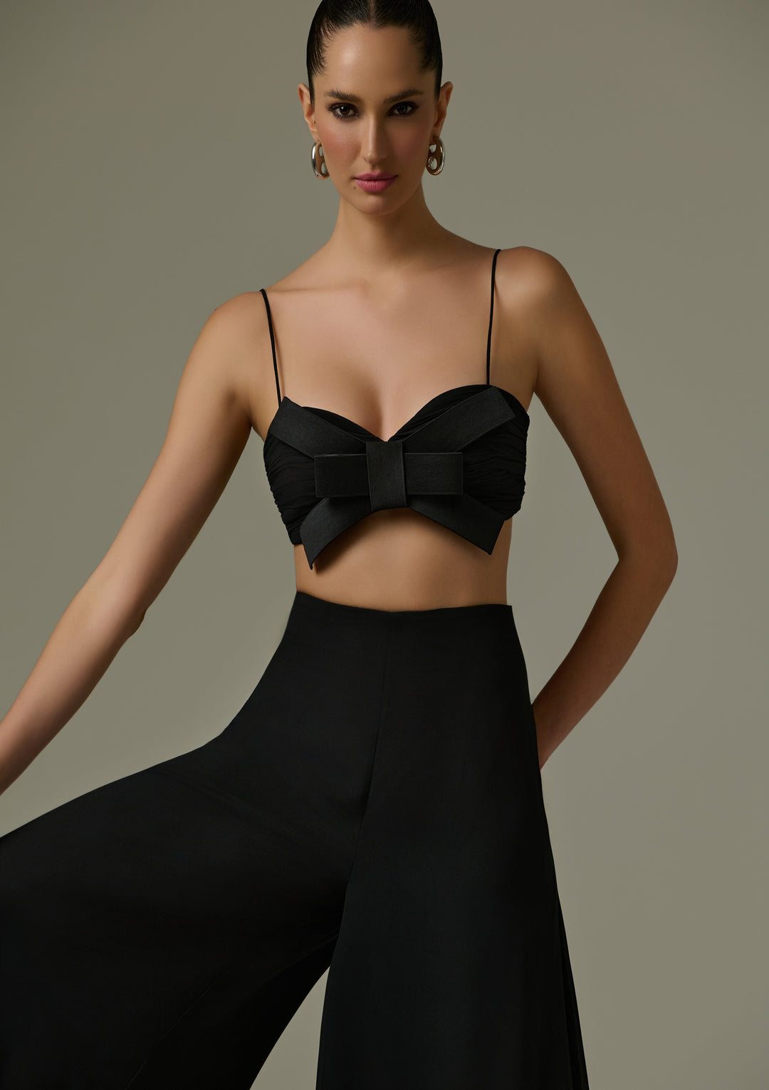 O Top Paysandú combina leveza, estrutura e um toque de irreverência elegante. Confeccionado em crepe royale, tecido com brilho sutil, caimento encorpado e toque refinado, o modelo traz busto estruturado com franzido delicado, valorizando o colo com romantismo moderno. O grande laço escultural central confere assinatura visual impactante, sem abrir mão da sofisticação.