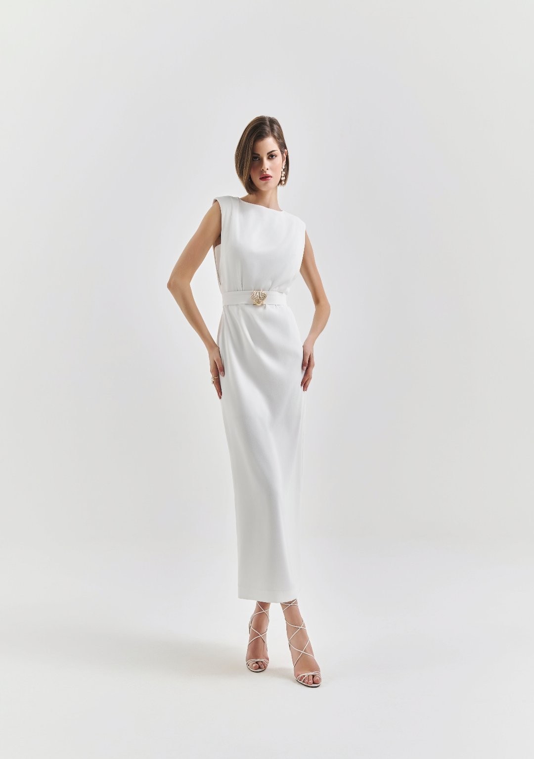 Este vestido tubinho midi em crepe é a escolha perfeita para mulheres que buscam uma peça refinada e atual. O decote redondo traz um visual clássico, enquanto as mangas com cava acentuada proporcionam um toque moderno e arrojado. O vestido é acompanhado de um top reto, que complementa o look com sofisticação e elegância. O fechamento nas costas com zíper dourado aparente adiciona um detalhe contemporâneo e ousado, enquanto a fenda na saia oferece movimento e fluidez ao caminhar. Ideal para eventos que exigem um equilíbrio entre estilo e conforto.