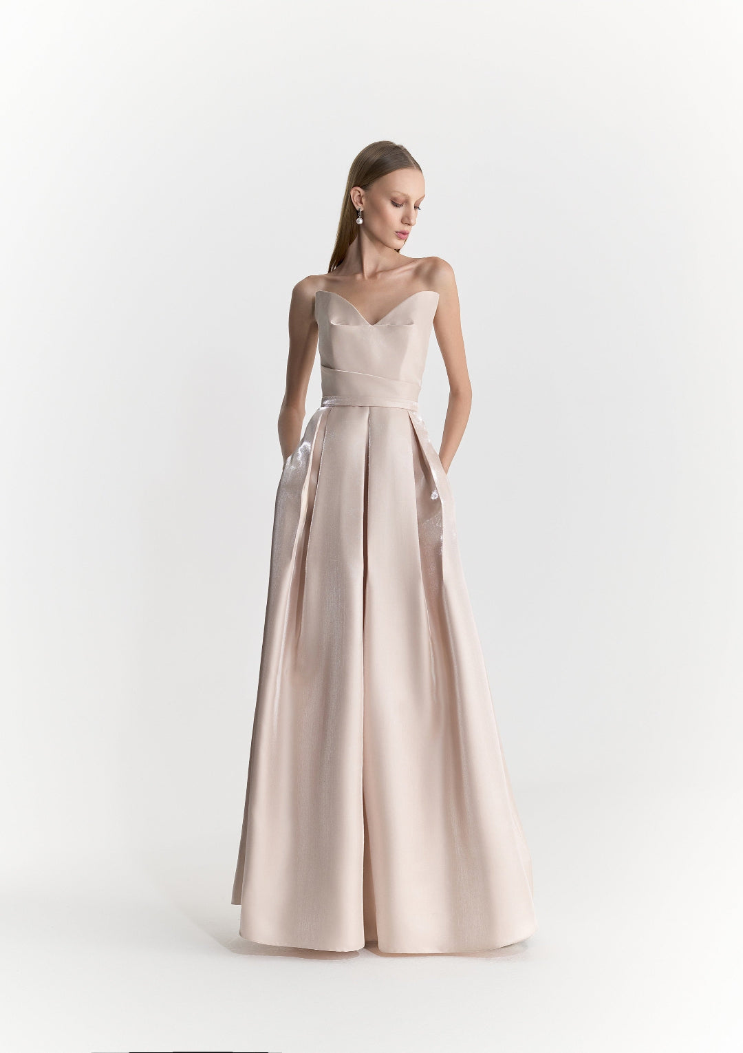 Sinônimo de sofisticação moderna, este vestido longo da V.Condotti é confeccionado em Zibeline Glow, um tecido estruturado com brilho acetinado que destaca a silhueta com elegância. O modelo tomara que caia com decote coração traz feminilidade.